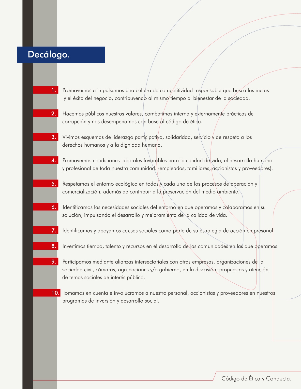 Como empresa comprometida con la sociedad, compartimos nuestra Declaración de Responsabilidad Social Empresarial, el Decálogo de Empresa Socialmente Responsable y nuestro Código de Ética y Conducta.